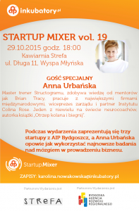 Podczas spotkania zaprezentują się trzy firmy działające w ramach AIP Bydgoszcz. Będzie to dla nich okazja do pokazania się szerszej publiczności oraz zyskania przychylności gościa specjalnego, którym będzie Anna Urbańska – Polska Lwica Biznesu 2015. Zaproszony ekspert opowie o tym jak, wykorzystać najnowsze badania nad mózgiem w prowadzeniu biznesu.