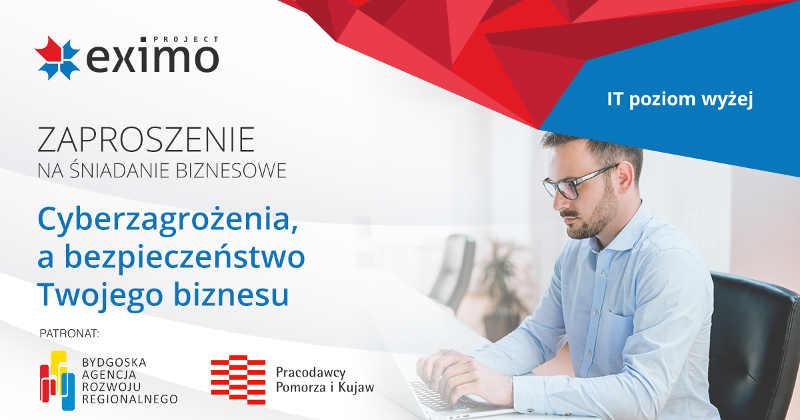 Bydgoska Agencja Rozwoju Regionalnego zaprasza na śniadanie biznesowe pt. „Cyberzagrożenia, a bezpieczeństwo Twojego biznesu”, zorganizowane przez firmę Eximo  Project. Wydarzenie odbędzie się 12 października 2017 r., w godz. 9.00 – 11.40 w hotelu Holiday Inn w Bydgoszczy. BARR objęła patronat nad wydarzeniem.
