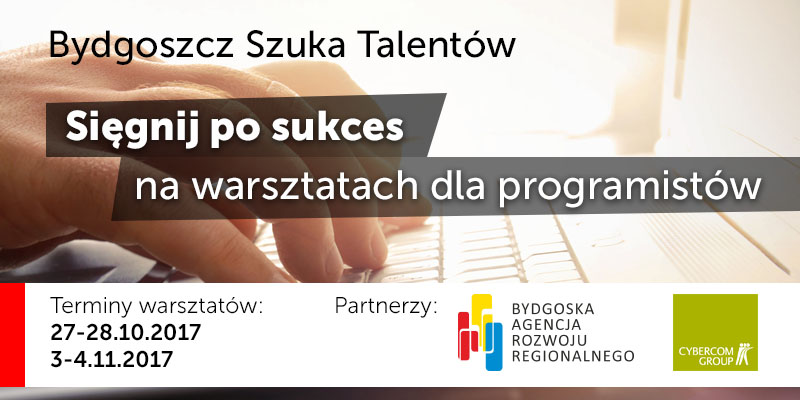 Bydgoska Agencja Rozwoju Regionalnego rozpoczyna kolejną edycję programu Bydgoszcz Szuka Talentów. W tej edycji będą realizowane warsztaty dla programistów w partnerstwie z bydgoskim oddziałem firmy Cybercom Poland. Uczestnicy nie ponoszą opłat za udział w warsztatach.