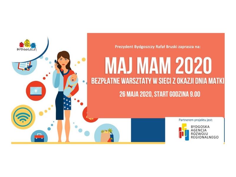 26 maja 2020 r. odbędzie się już VIII edycja Maju Mam. Organizatorzy zapraszają na wirtualne spotkania mamy, które chcą rozpocząć swoją aktywność zawodową po urlopie związanym z opieką nad dzieckiem, aktywne kobiety, które mają pomysł na swój biznes, ale nie mają odwagi na pierwszy krok oraz panie, które już działają, realizując swoje pasje i pomysły.