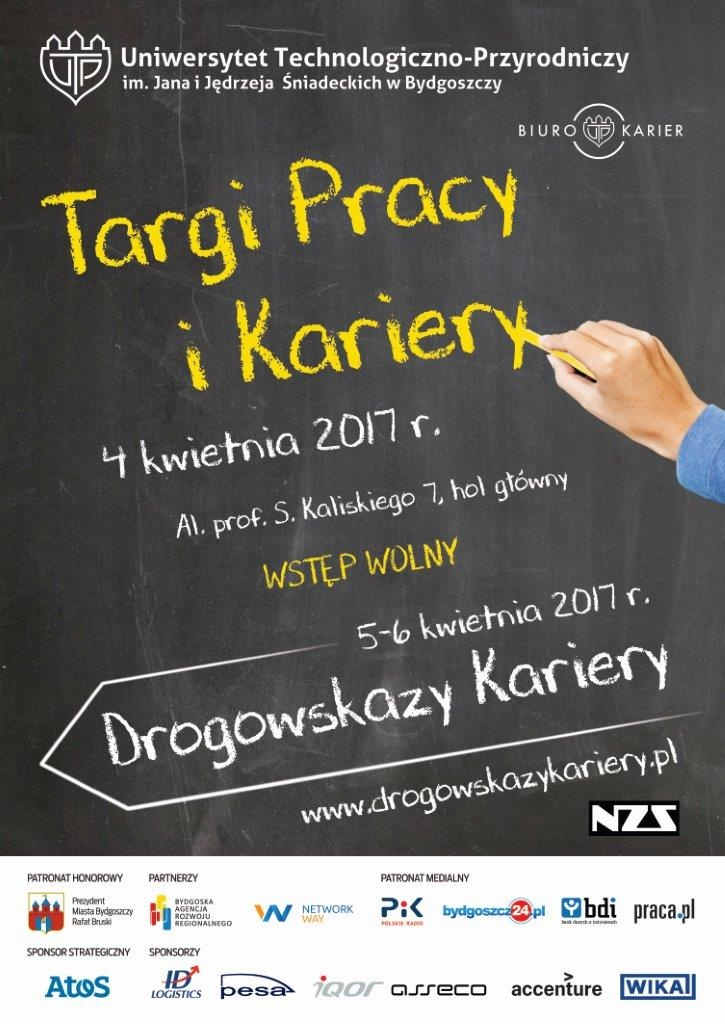Po raz pierwszy w tym roku Targi Pracy i Kariery powiązaliśmy z Drogowskazami Kariery organizowanymi przez niezależne Zrzeszenie Studentów UTP. W ciągu dwóch dni 5 i 6 kwietnia, będzie można wziąć udział w warsztatach i szkoleniach przygotowanych przez specjalistów z różnych dziedzin. Harmonogram wydarzenia dostępny jest na stronie www.drogowskazykariery.pl.